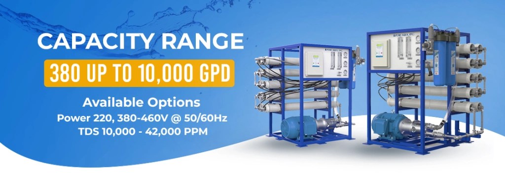 Marine desalination systems are highly effective treatment methods for the production of fresh drinking water through the utilization of reverse osmosis. The reverse osmosis process works by utilizing high-pressure pumps to force seawater through a semipermeable RO membrane that consists of small pores, which prevents the salt and minerals from passing along through the system with the product water. What comes out at the end is a finished product water that has been separated from its high concentration of salt, and is now capable of being consumed.